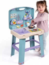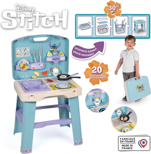 Deze kinderkeuken verandert in enkele eenvoudige stappen van een koffertje in een volwaardig kookstudio – klap hem uit, plaats de pootjes en het koken kan beginnen. Het vrolijke DISNEY STITCH-motief stimuleert de fantasie en rollenspellen, zodat kinderen urenlang speelplezier hebben.