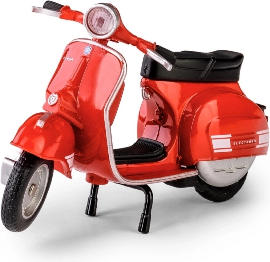Gedetailleerd uitgewerkt model van de Vespa 200 Rally uit 1976 op schaal 1:18, perfect voor verzamelaars en liefhebbers van klassiekers. Biedt hoogwaardige afwerking van kunststof met metalen elementen, rubberen banden, een draaibaar voorwiel en een inklapbare standaard voor veilig tentoonstellen. Stijlvolle uitvoering in rode kleur.