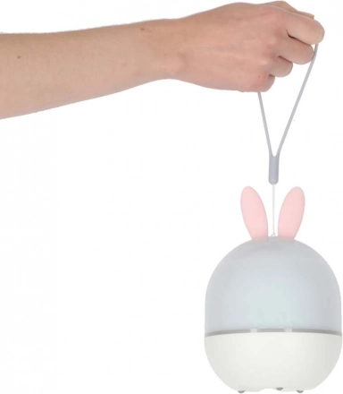 Een schattig nachtlampje voor kinderen met konijnenoren verandert de kamer in een magische sterrenhemel. Biedt sterrenprojectie, 6 verwisselbare motieven, rotatie, muziek en timer. Dankzij USB‑opladen en afstandsbediening ideaal voor rustgevend inslapen en als decoratieve verlichting in de kinderkamer.
