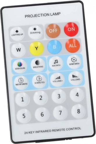 Bedien aan/uit, helderheid, kleuren, muziek, volume, rotatie en een timer van 15/30 minuten rechtstreeks vanuit bed.