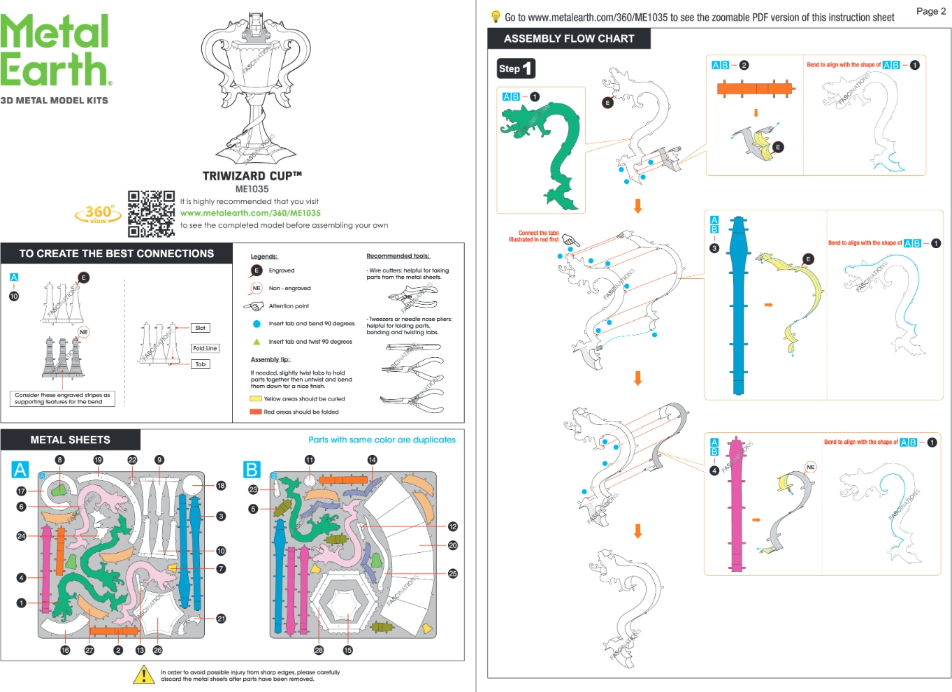 Bouwen vereist geen lijm – de onderdelen worden verbonden met vergrendelingen en omgebogen lipjes. Voor comfortabel monteren raden we kleine zijsnijtangen en fijne platte tangetjes aan (niet inbegrepen). Dankzij de lasergravure komen de fijne lijnen, ornamenten en reliëfinscripties prachtig tot hun recht.