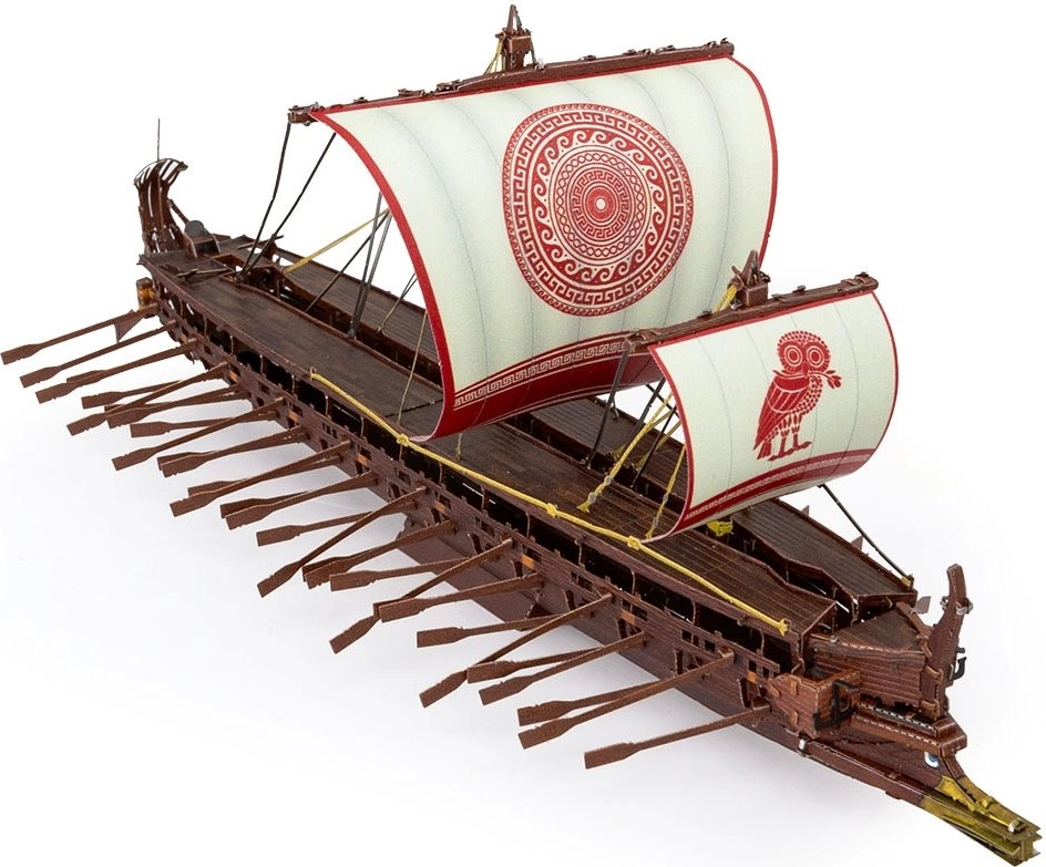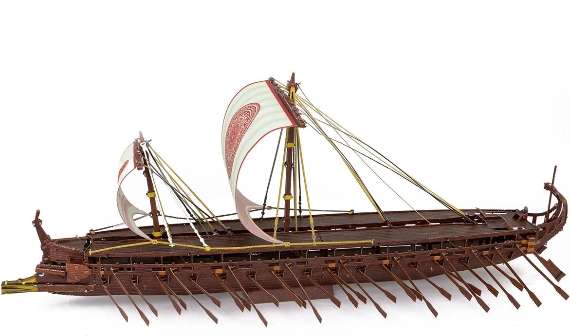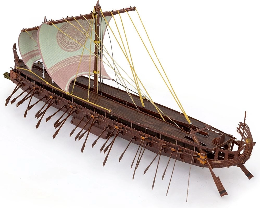 Fijne lijnen van zeilen, beplating van de romp en dekdetails zijn met hoge precisie uitgesneden en gegraveerd voor een authentieke look van de trireme.
