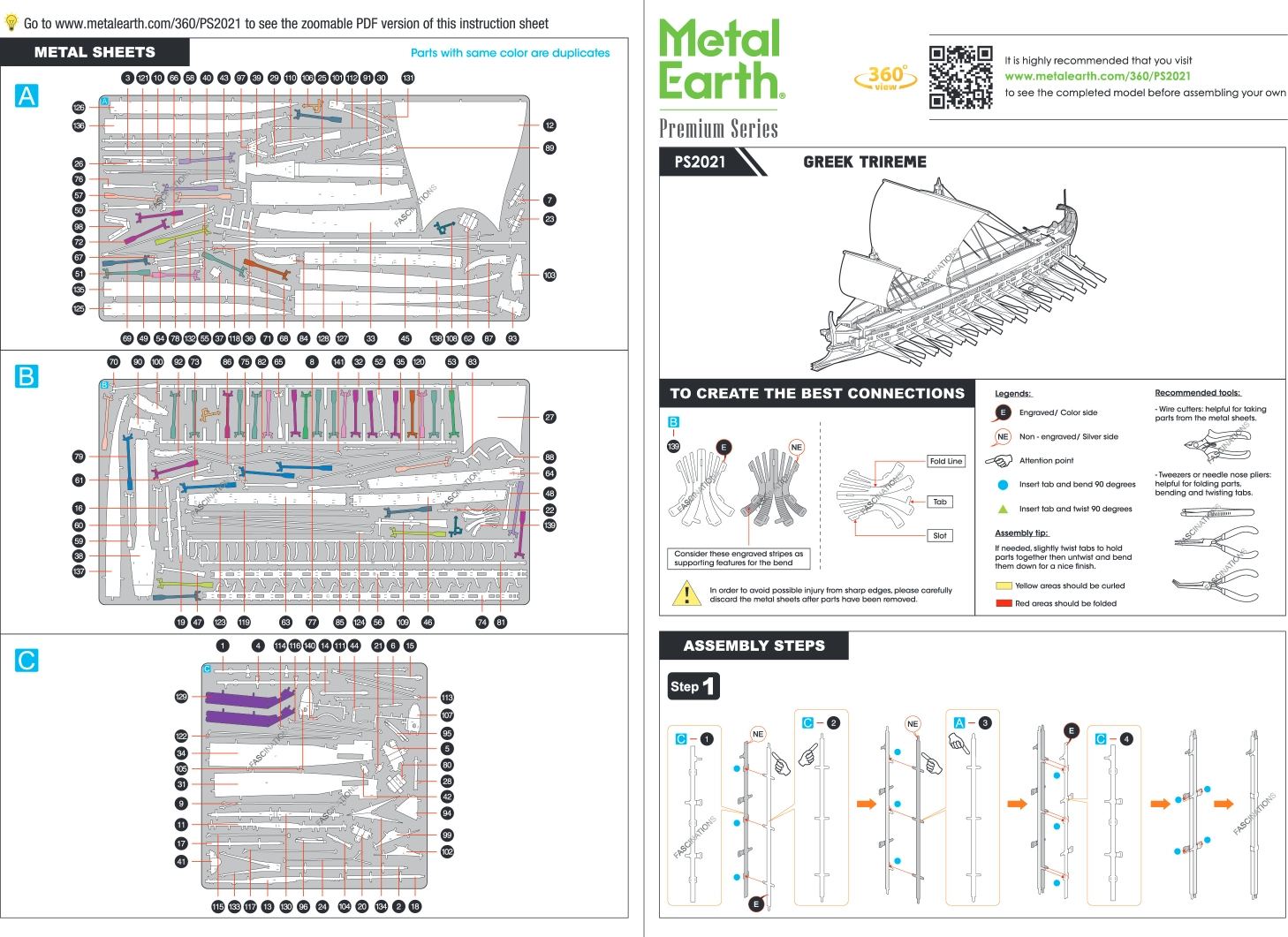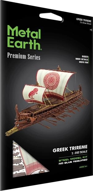 Ontdek de charme van de antieke marine met het metalen 3D-model van een Griekse trireme. De METAL EARTH Premium-serie biedt extra fijne details dankzij lasergravure, die de zeilen, riemen en dekuitrusting benadrukt. Het model is bedoeld voor iedereen die van precisiewerk, geschiedenis en designobjecten houdt.