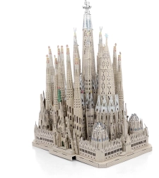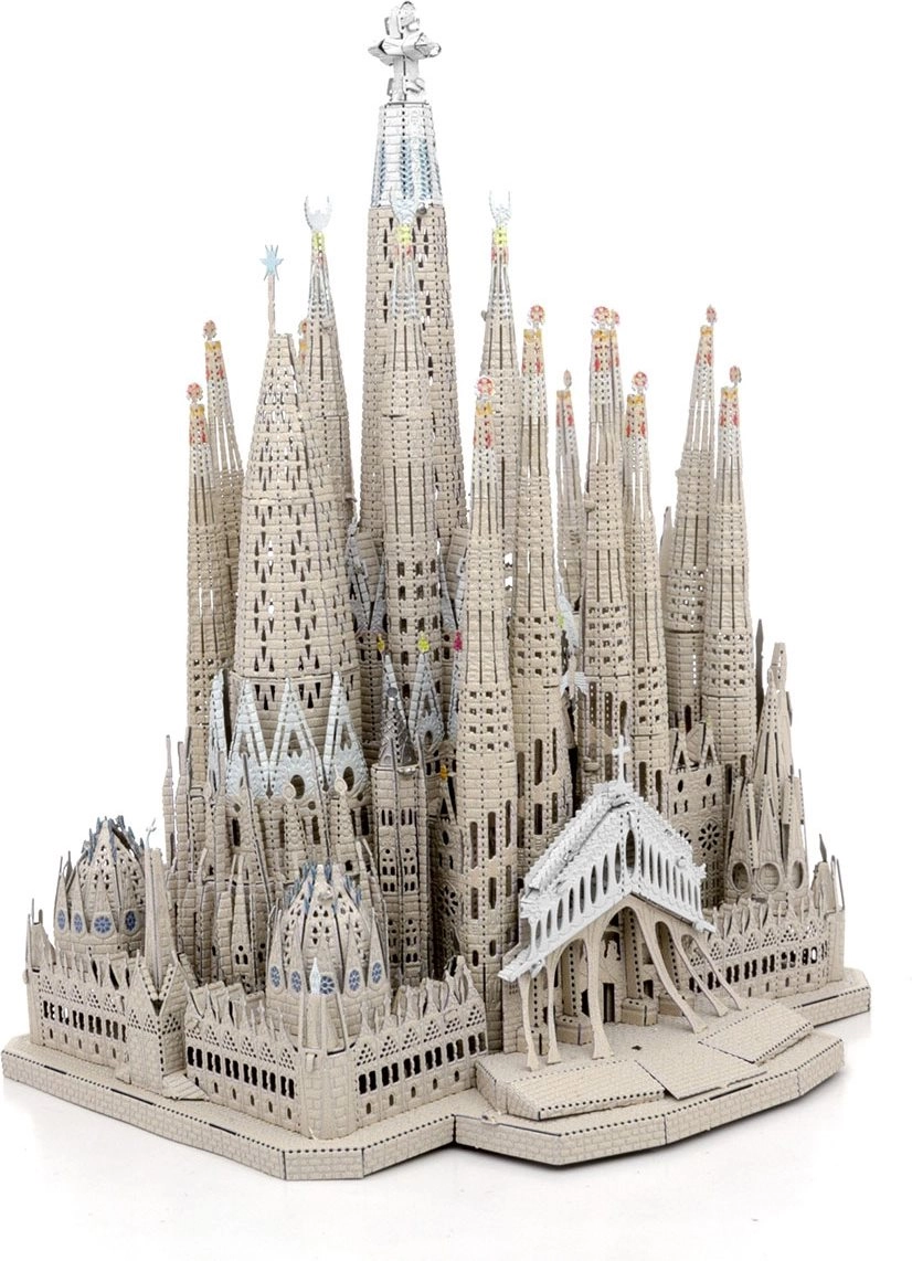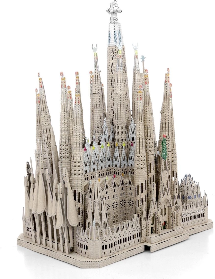 De Premium-set van METAL EARTH maakt het mogelijk om van vlakke stalen plaatjes een indrukwekkend 3D-model van de Sagrada Família te bouwen. De afzonderlijke onderdelen worden uit metalen plaatjes gehaald en met vergrendelingen verbonden – zonder lijm. Lasergegraveerde details accentueren gevels, torens en ramen en geven het model een authentieke uitstraling.