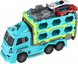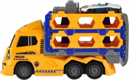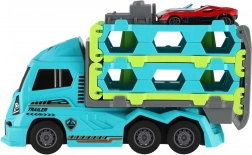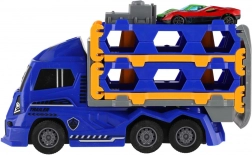 Kunststof vrachtwagen-autotransporter met vliegwiel 22 cm + 2 sportautootjes