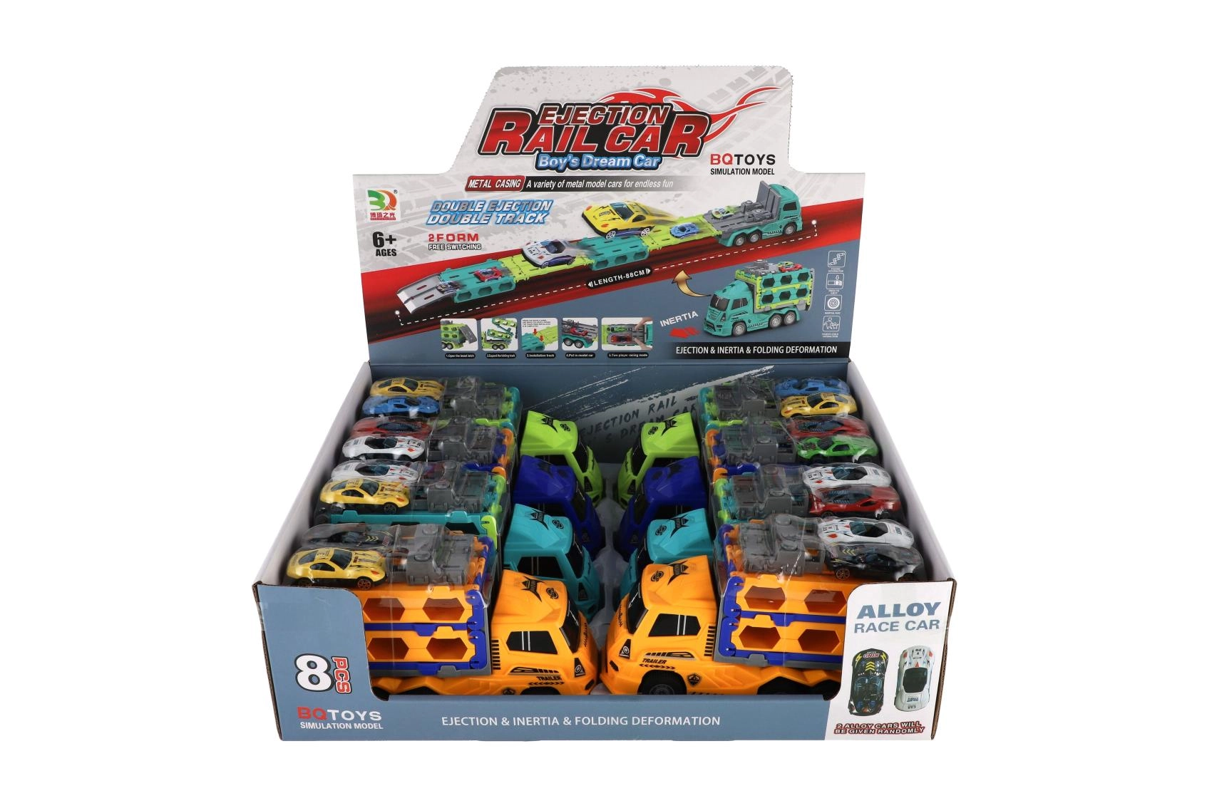 In de verpakking zitten 2 sportautootjes die je op het bovendek kunt laden en eenvoudig kunt vervoeren.