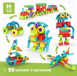 Robuuste, gladde en kleurrijke componenten verbinden eenvoudig en blijven stevig zitten. Ideaal voor kleine handjes en veilig spelen vanaf 3 jaar.