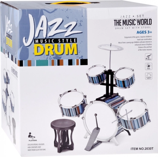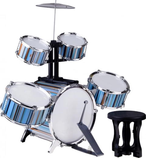 Kinder drumstel 5-delig met krukje – blauw design