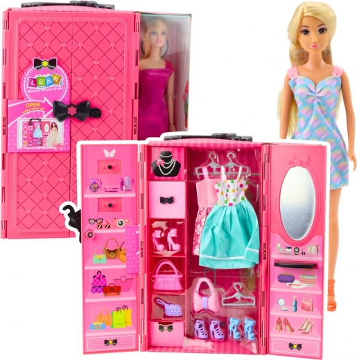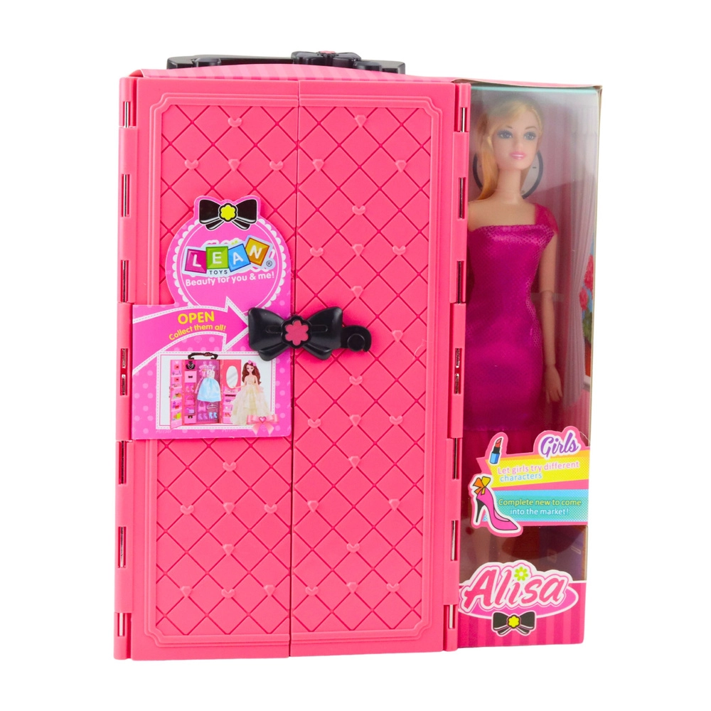 Stijlvolle pop met roze kledingkast zorgt voor uren creatieve speelpret. Kinderen kunnen de pop aankleden, jurken, schoenen en handtassen combineren en eigen modieuze styling creëren. De kast heeft deuren die open kunnen, binnenin een spiegel en plankjes voor overzichtelijke opslag van accessoires. Een geweldig cadeau om creativiteit en esthetisch gevoel te ontwikkelen.