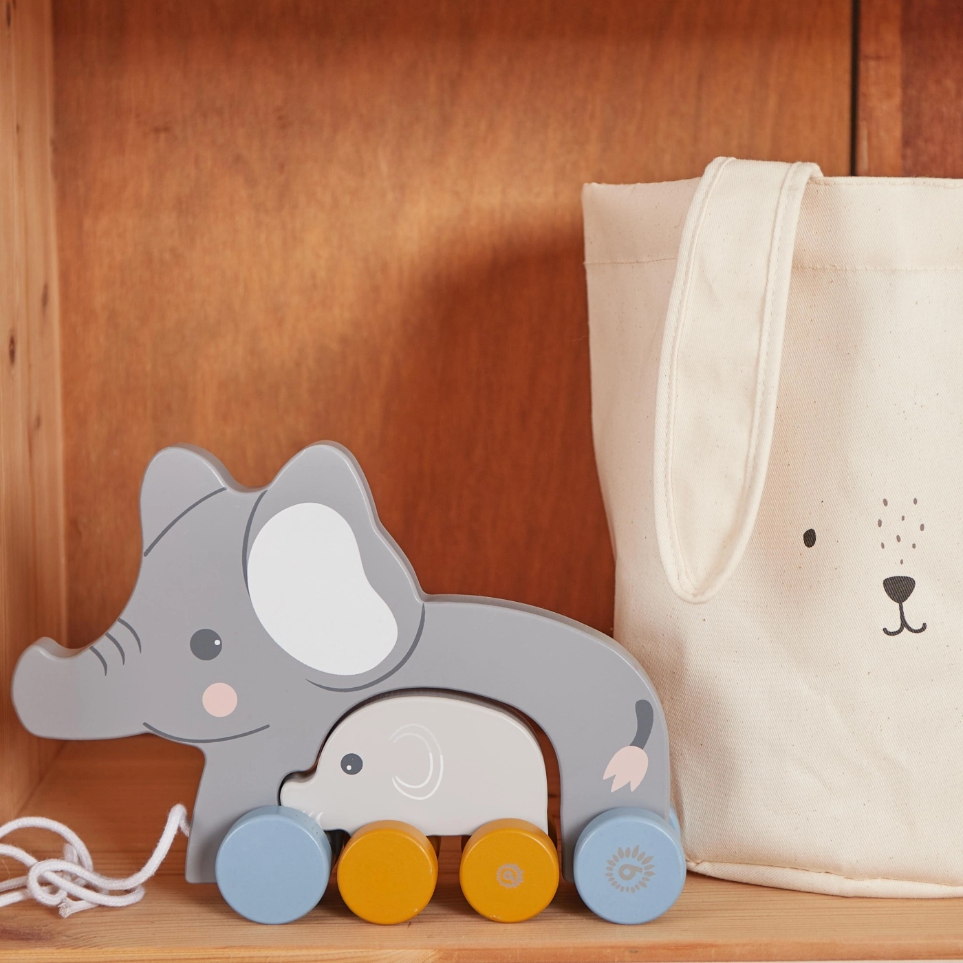 Deze stijlvolle trekspeelgoed-olifant van Bieco brengt kinderen plezier in bewegen en ontdekken. Grote en kleine olifant op stabiele wielen rollen soepel, en dankzij het katoenen koord kunnen kinderen ze gemakkelijk overal mee naartoe nemen. De verborgen kleine olifant kan eenvoudig worden uitgenomen en apart bespeeld.