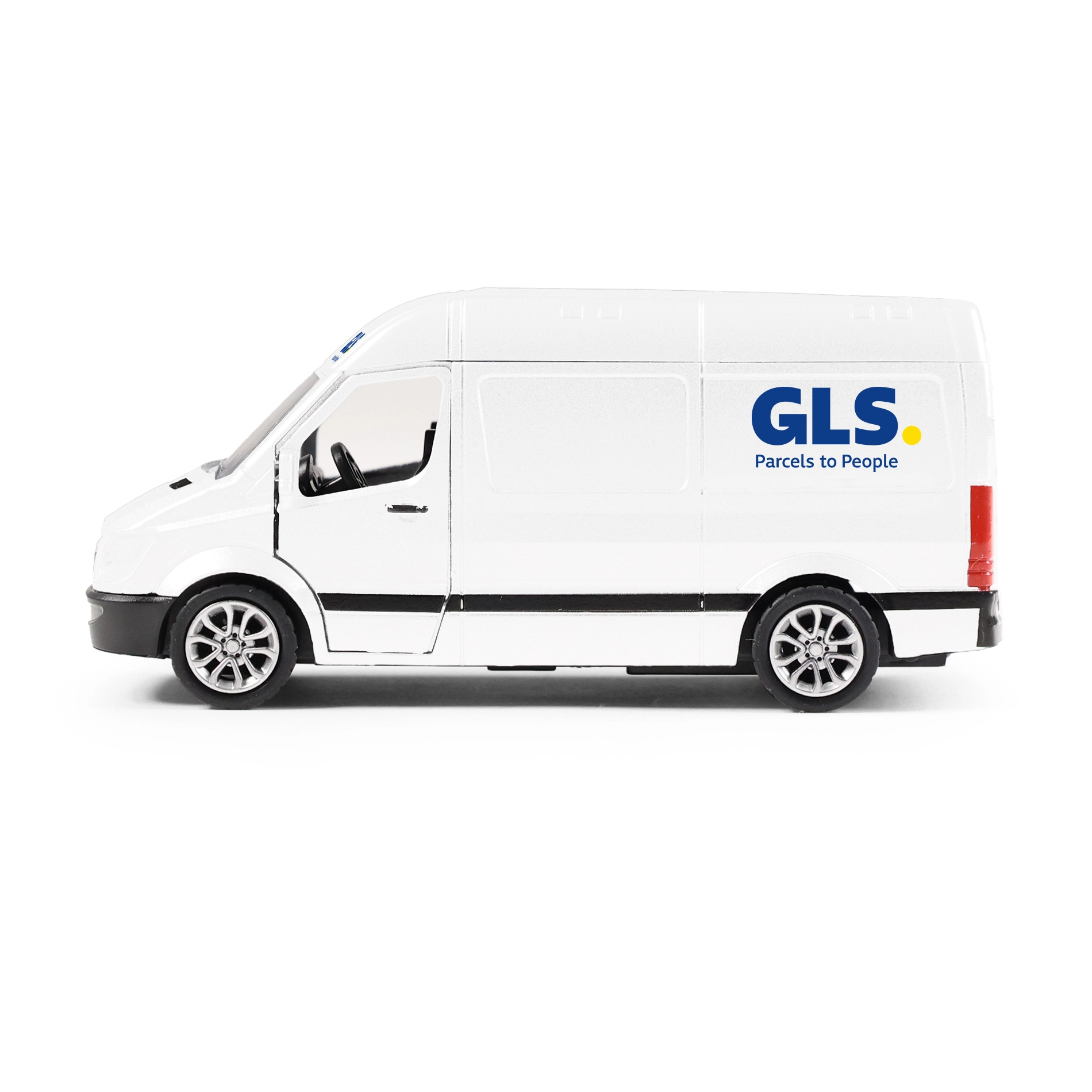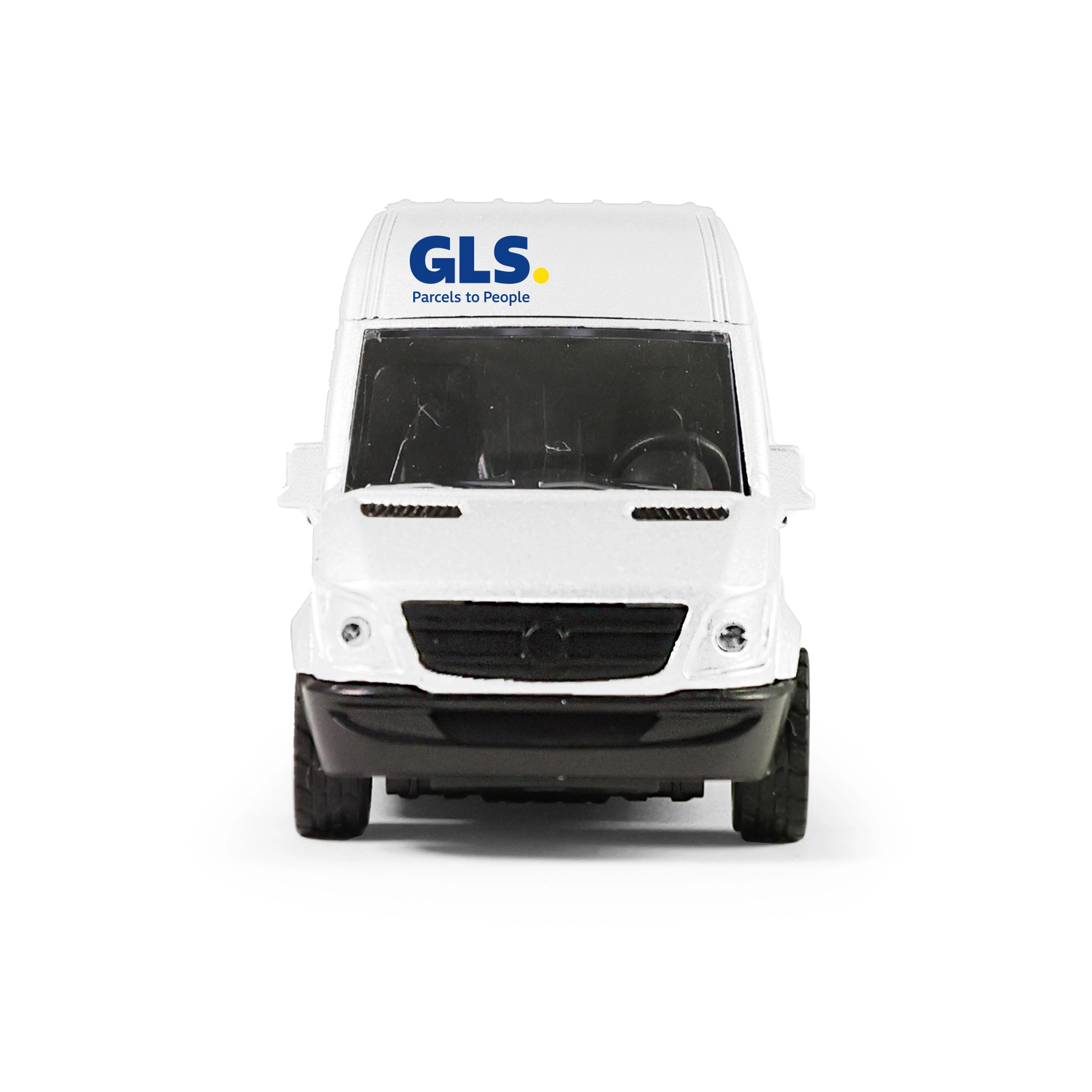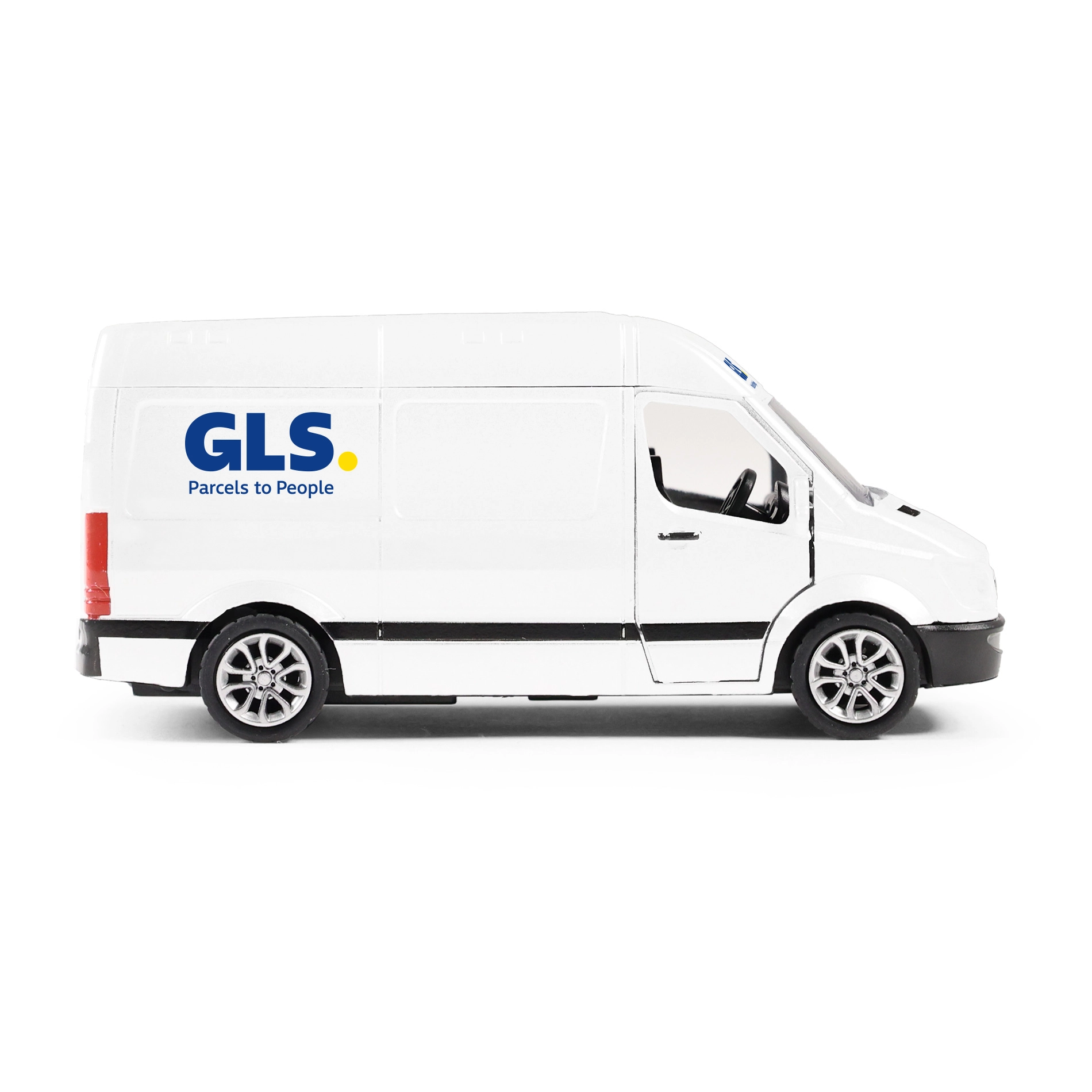 Precieze bedrukking van het GLS-logo en de slogan “Parcels to People”, de carrosserievorm, ramen en velgen zien eruit als bij de echte wagen.