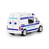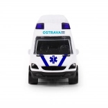 Ontdek een gedetailleerd model van een metalen ambulance geïnspireerd op de stad Ostrava. Het autootje blinkt uit door duurzame afwerking, compact formaat en een soepele freewheel-rol, waardoor spelen natuurlijk en leuk is.