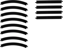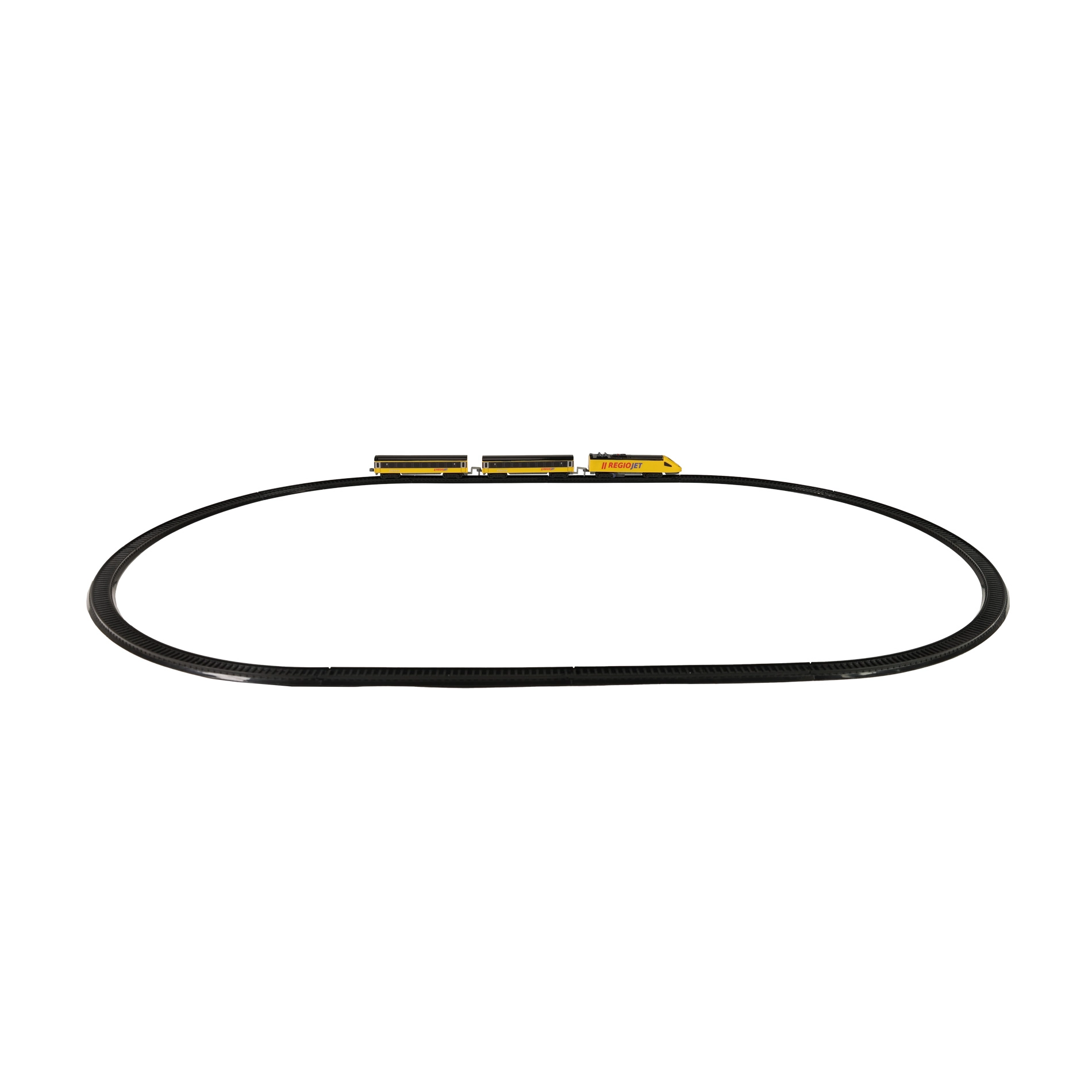 De set bevat gebogen en rechte rails waarmee je een gesloten circuit bouwt voor ononderbroken treinritten.