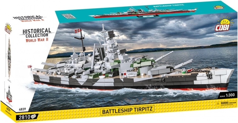 De COBI TIRPITZ uit de Historical Collection legt het beroemde Duitse slagschip uit de Tweede Wereldoorlog – het zusterschip van de BISMARCK – getrouw vast. Op schaal 1:300 krijg je realistische proporties, de karakteristieke camouflagebeschildering en vele details waaronder torens, radarstengen en sloepen. Het model heeft een indrukwekkende lengte van 87 cm en komt prachtig tot zijn recht op een plank of in een vitrine.