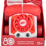 De klassieke trektelefoon Fisher-Price Chatter in iconisch rood, uitgebracht ter gelegenheid van het 80-jarig jubileum van MATTEL, heeft een draaikiezer met de cijfers 0–9, vrolijke geluiden en bewegende ogen tijdens het trekken. Perfect voor eerste rollenspellen en het ontwikkelen van de grove motoriek – van spelen zittend tot lopen met het koord.