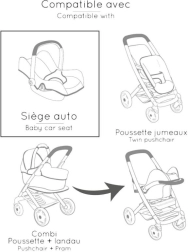 Ouders waarderen het eenvoudige en snelle schakelen tussen modi, de veilige en stabiele afwerking en het prettige, universele uiterlijk in beige. De set is geschikt voor poppen tot 42 cm en past perfect in elke kinderkamer.