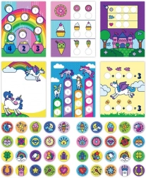 De stickerset met een magisch eenhoornthema stimuleert de fijne motoriek, verbeeldingskracht en geduld. Dankzij de praktische dispenser pakken kinderen de stickers makkelijk en plakken ze op de gemarkeerde plekken op de afbeeldingsvellen. De stickers zijn herbruikbaar, dus het plezier houdt niet snel op.