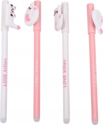 Een schattige gumiseerbare pen met kittenmotief die zowel schoolkinderen als volwassenen zal bevallen. Schrijft met een fijne lijn van 0,5 mm en dankzij de speciale inkt kun je tekst eenvoudig wissen en overschrijven. Verkrijgbaar in 2 kleurvarianten en in een praktische verpakking van 36 stuks in een displaybox voor overzichtelijke presentatie.