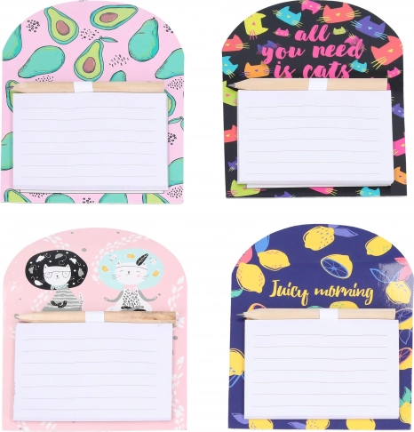 Dankzij de praktische houder is het potlood altijd bij de hand en de sterke magneet houdt de hele set veilig op zijn plaats. Je kunt kiezen uit een mix van aantrekkelijke designs (bloemen, fruit, dieren en meer) die perfect in je interieur passen.