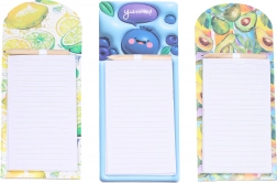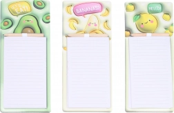 Praktische magnetische notitieblokken met potlood en schattige fruitmotieven, ideaal voor op de koelkast of whiteboard. Elk blok heeft 40 gelinieerde vellen, een magneet voor bevestiging en wordt geleverd in een mix van 6 varianten. Perfect voor boodschappenlijstjes, berichtjes en dagelijkse notities.