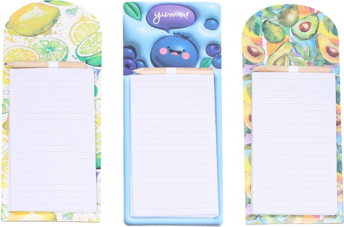 Breng orde in je boodschappen en dagelijkse taken met magnetische blokken met vrolijke fruitmotieven. Dankzij de sterke magneet bevestig je ze eenvoudig op de koelkast of andere metalen oppervlakken, zodat ze altijd binnen handbereik zijn. Inclusief een handig potlood bovenaan, zodat je op elk moment kunt schrijven zonder te zoeken.