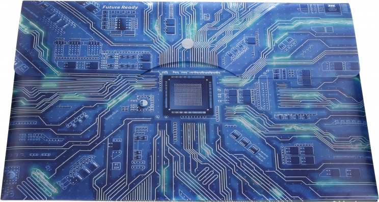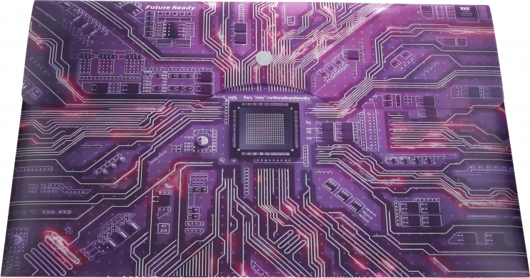 De map is ideaal voor school, colleges en kantoor – geliefd bij studenten, IT-liefhebbers en professionals. Kies uit 4 kleurvarianten met opvallende printplaatgraphics die je materialen een originele technologische stijl geven.