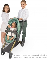Praktische details zijn de verstelbare kap, de driepuntsgordel voor een veilige zit van de pop en de ruime onderste mand. De wagen klapt snel in voor opbergen of transport in de auto. Inclusief elegante afneembare tas in de kleuren van de collectie.