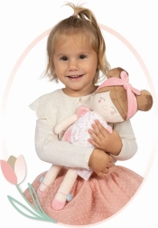 De pop is ontworpen met het oog op eenvoudig onderhoud – u kunt haar met de hand wassen op 30 °C. Ze wordt geleverd in een beschermende verpakking die het speelgoed tijdens het transport beschermt. De stijlvolle look van de Tulipe-collectie combineert tulpaccenten met zachte tinten voor een werkelijk elegante en tijdloze uitstraling.