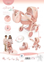 Deze inklapbare poppenwagen valt op door de doordachte combinatie van functies en prachtig Spaans design. De afneembare reiswieg kan met of tegen de rijrichting in worden geplaatst en is eenvoudig om te bouwen tot een sportzitje. Dankzij de driepuntsgordel zit de pop altijd veilig en stabiel.