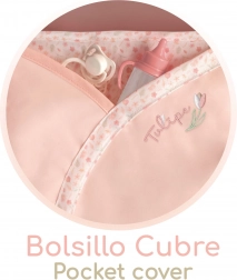 - Afneembare tas in de vorm van een tulp, wiegbekleding met oogjes en zakje, zak op de kap met belletje, matras, opbergruimte