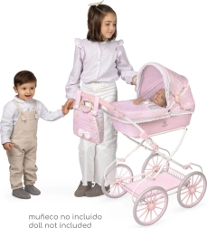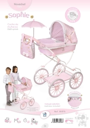 De romantische Sophie-collectie valt op door zachte kleuren en mooie accessoires die het elegante Spaanse design onderstrepen. Dankzij de hoge duwbeugel is deze wagen geschikter voor grotere kinderen en perfect voor dagelijks speelplezier én voor kleine verzamelaars.