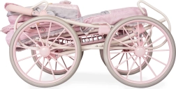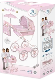 Een elegante kinderpoppenwagen uit de Sophie-collectie met een romantisch design in lichtroze met grijze en witte details. Voorzien van een in hoogte verstelbare duwbeugel 52–81 cm, opvouwbaar frame, veringsschommels en een rijke uitrusting inclusief tas, parasol en matras. Ideaal voor grotere meisjes die makkelijke bediening en zorgvuldige afwerking waarderen.