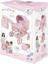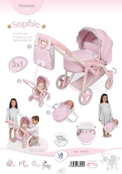 Elegante poppenwagen uit de Sophie-collectie met 3-in-1 functie – reiswieg, sportzitje en draagtas. Dankzij de in hoogte verstelbare duwbeugel, zwenkbare voorwielen en grote opbergmand is hij ideaal voor comfortabel speelplezier. Betoverend door het zachte roze design en de precisie-afwerking.