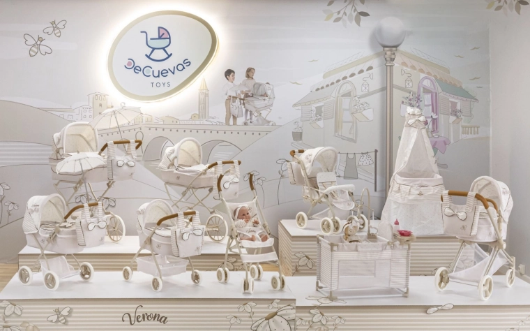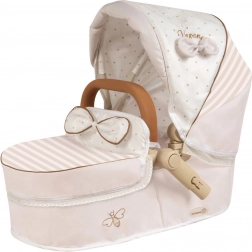 De subtiele combinatie van lichtbeige en wit met fijne patronen, strikjes en geborduurde bijtjes geeft de VERONA-wagen een tijdloze look, geïnspireerd op moderne kinderwagens. Dankzij de duwhoogte van 73 cm en de combinatie van diepe en sportieve versie is hij ideaal voor kleuters die realistische details en eenvoudige bediening waarderen.