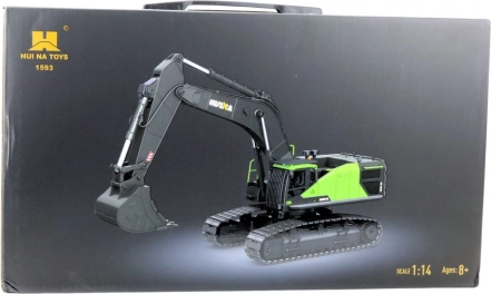 Geniet van bouwplezier met de gedetailleerde RC graafmachine HUI NA op schaal 1:14. Het rupsonderstel zorgt voor uitstekende terreinvaardigheid en de combinatie van ABS-kunststof en metalen onderdelen biedt geweldige duurzaamheid bij intensief spelen. De krachtige 2,4 GHz-zender met een bereik tot 50 m en 22 bedieningskanalen maakt soepel vooruit/achteruit rijden, het draaien van de cabine, het heffen en laten zakken van de arm en nauwkeurige bediening van de bak mogelijk.