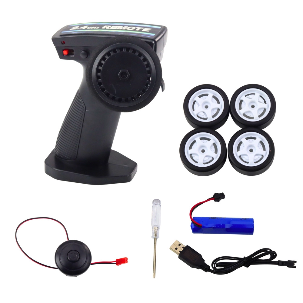 - RC-auto, 7.4V Li-accu, USB-oplaadkabel, set wielen voor drift, 2.4G-controller, schroevendraaier