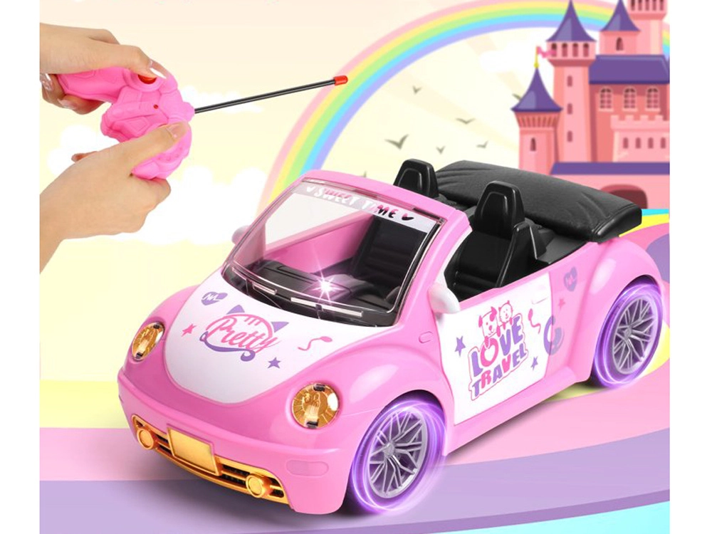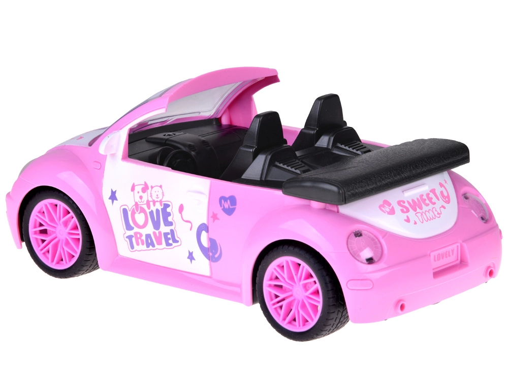 De stijlvolle roze cabrio voor poppen combineert een aantrekkelijk uiterlijk met eenvoudige bediening. Kinderen sturen en bepalen de richting met twee knoppen, terwijl de koplampen bij vooruit rijden gaan branden voor een realistischer gevoel. Ideaal voor de kinderkamer op gladde, vlakke ondergronden.