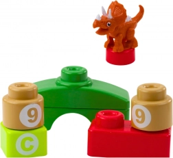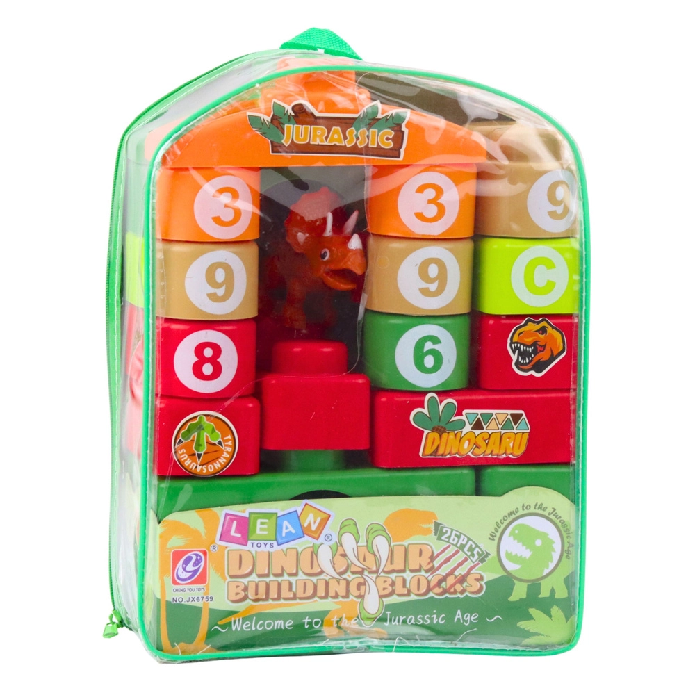 De blokken zijn licht, klikken eenvoudig vast en zijn veilig voor dagelijks gebruik. De dinosaurusfiguur prikkelt de fantasie en nodigt uit tot het verzinnen van eigen verhalen. De hele set wordt opgeborgen in een transparante rugzak met rits, wat het opbergen en meenemen naar de opvang of op reis vergemakkelijkt.