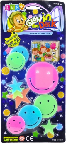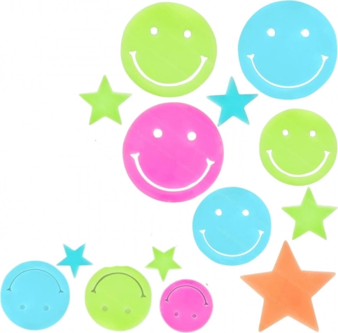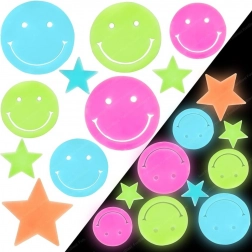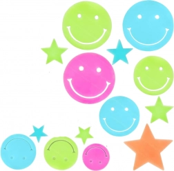 Een vrolijke set fluorescerende stickers brengt een kinderkamer tot leven en zorgt voor een sprookjesachtige sfeer. Na belichting komen hun zachte gloed in het donker en de kleurrijke smileys en sterretjes in verschillende formaten prachtig tot uiting. Dankzij de zelfklevende foam-elementen hechten ze betrouwbaar aan muren, plafonds en meubels en zijn ze eenvoudig sporenloos te verwijderen. Gemaakt van veilige, niet-giftige materialen die voldoen aan Europese normen.