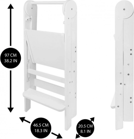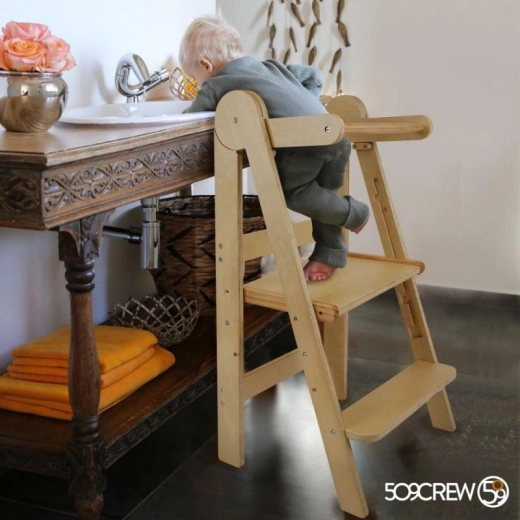De inklapbare leertoren LOFTY helpt kinderen mee te doen aan dagelijkse activiteiten – van koken tot tandenpoetsen. Hij is gemaakt van hoogwaardig multiplex met bewezen veiligheid zonder formaldehyde en voldoet daarmee aan de eisen van het moderne huishouden. Door het doordachte ontwerp is hij makkelijk te verplaatsen en op te bergen.