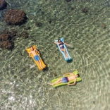 Ontspan op de golven of bij het thuiszwembad. Het opblaasbare INEX-matras valt op door een origineel design en een opvallende kleur, zodat je het op het water gemakkelijk ziet. Dankzij het kwaliteits-PVC is het bestand tegen kleine schuren en beschadigingen, en de twee luchtkamers zorgen voor betere stabiliteit en comfortabel liggen.