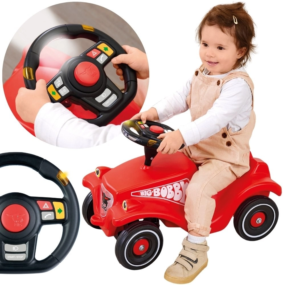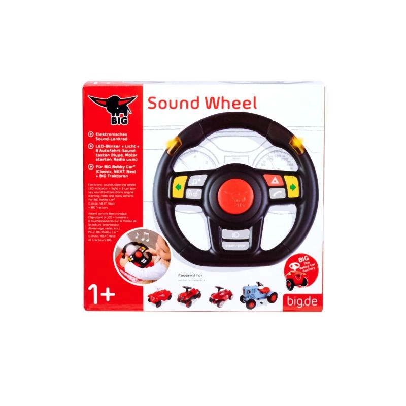 Geef het kinderlijk sturen extra plezier met dit multifunctionele BIG-stuur. Het biedt 8 realistische geluiden, LED-richtingaanwijzers, claxon en lichteffecten. Het is waterbestendig en volledig compatibel met Bobby Car loopauto’s sinds 2010 (Classic, NEO, NEXT).