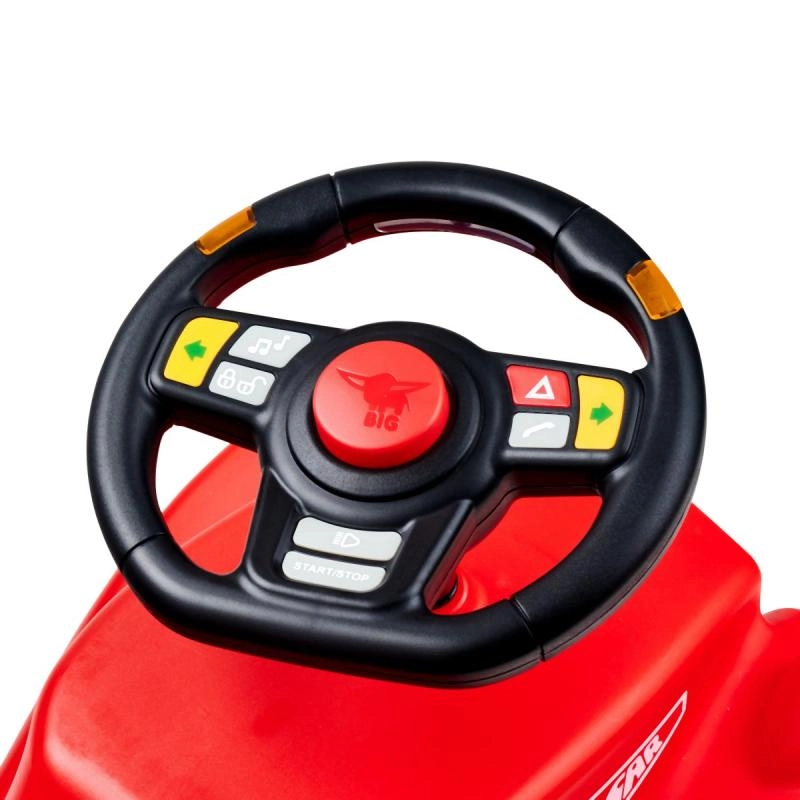 Het multifunctionele BIG-stuur verandert elke rit op de loopauto in een echt avontuur. Kinderen zullen de richtingaanwijzers met LED-lichten, de claxon, startgeluid, radio en andere realistische effecten waarderen. Dankzij de waterbestendige uitvoering is het ook ideaal voor buitenspelen.