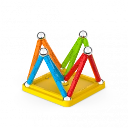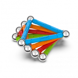Stevige kunststof staafjes en glanzende metalen bolletjes klikken betrouwbaar vast dankzij magneten. De constructies zijn stabiel en gemakkelijk opnieuw te bouwen.