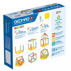 Alle kunststoffen van de staafjes en het voetstuk zijn gemaakt van 100% gerecycled materiaal, wat het een verantwoorde en veilige keuze maakt. De verpakking bevat bovendien een handige opbergdoos, zodat je de bouwset altijd bij je kunt hebben – thuis, onderweg of bij de grootouders.