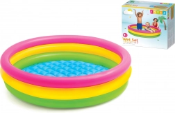 Het opblaasbare kinderzwembad met een diameter van 147 cm en een hoogte van 33 cm is de ideale keuze voor warme zomerdagen. De felle kleuren roze, geel en groen trekken elk kind aan en veranderen elke ruimte in een klein waterkoninkrijk.< /p>