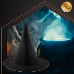 De klassieke zwarte heksenhoed is de ideale accessoire voor Halloween, carnaval en themafeesten. De kegelvorm met brede rand geeft elke outfit een opvallend effect. Hij is licht, comfortabel en gemakkelijk op te bergen – vouwt plat op. De universele maat past de meeste volwassenen en oudere kinderen.