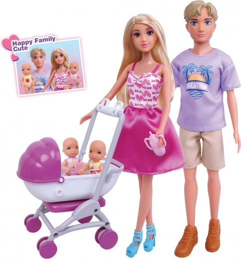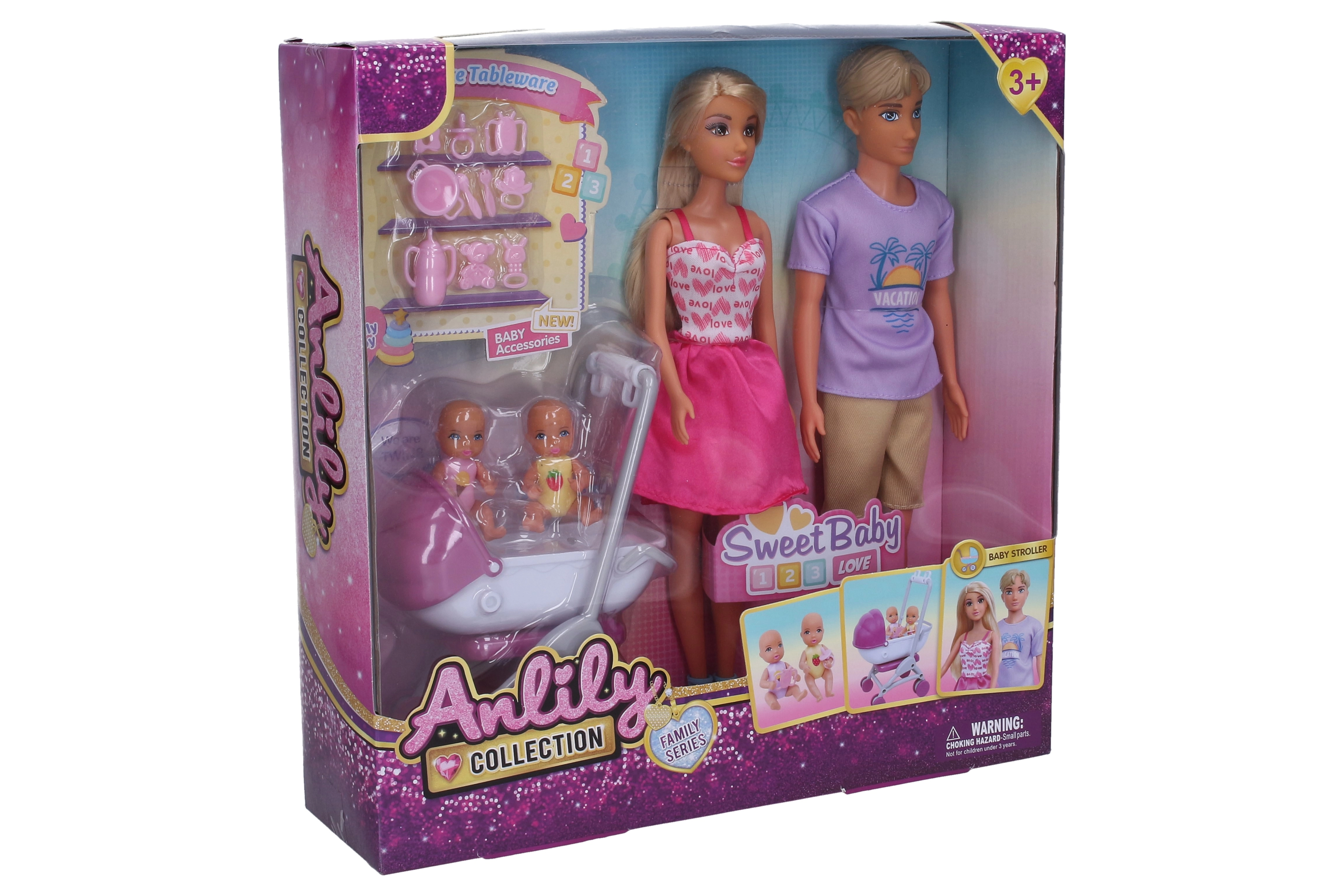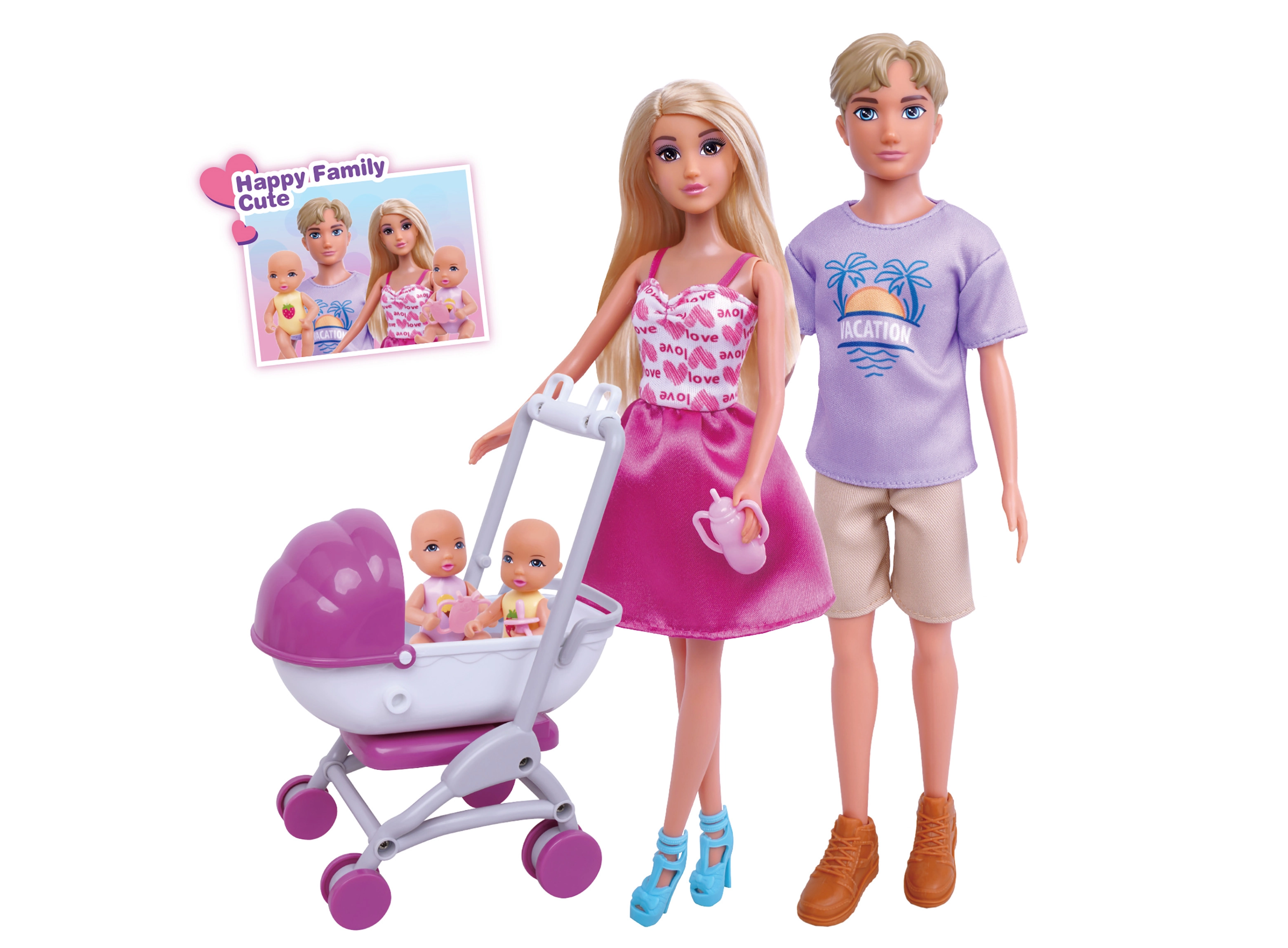 - Complete familieset: pop 30 cm, partner, 2 baby’s, kinderwagen en accessoires