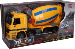 Deze gedetailleerde betonmolen zorgt voor een authentieke bouwplaatsbeleving. Kinderen laten de mengtrommel draaien met het zijwiel en dankzij het vliegwiel rolt het voertuig soepel vooruit. De lichten en geluiden maken het spel levensecht en stimuleren de verbeelding.