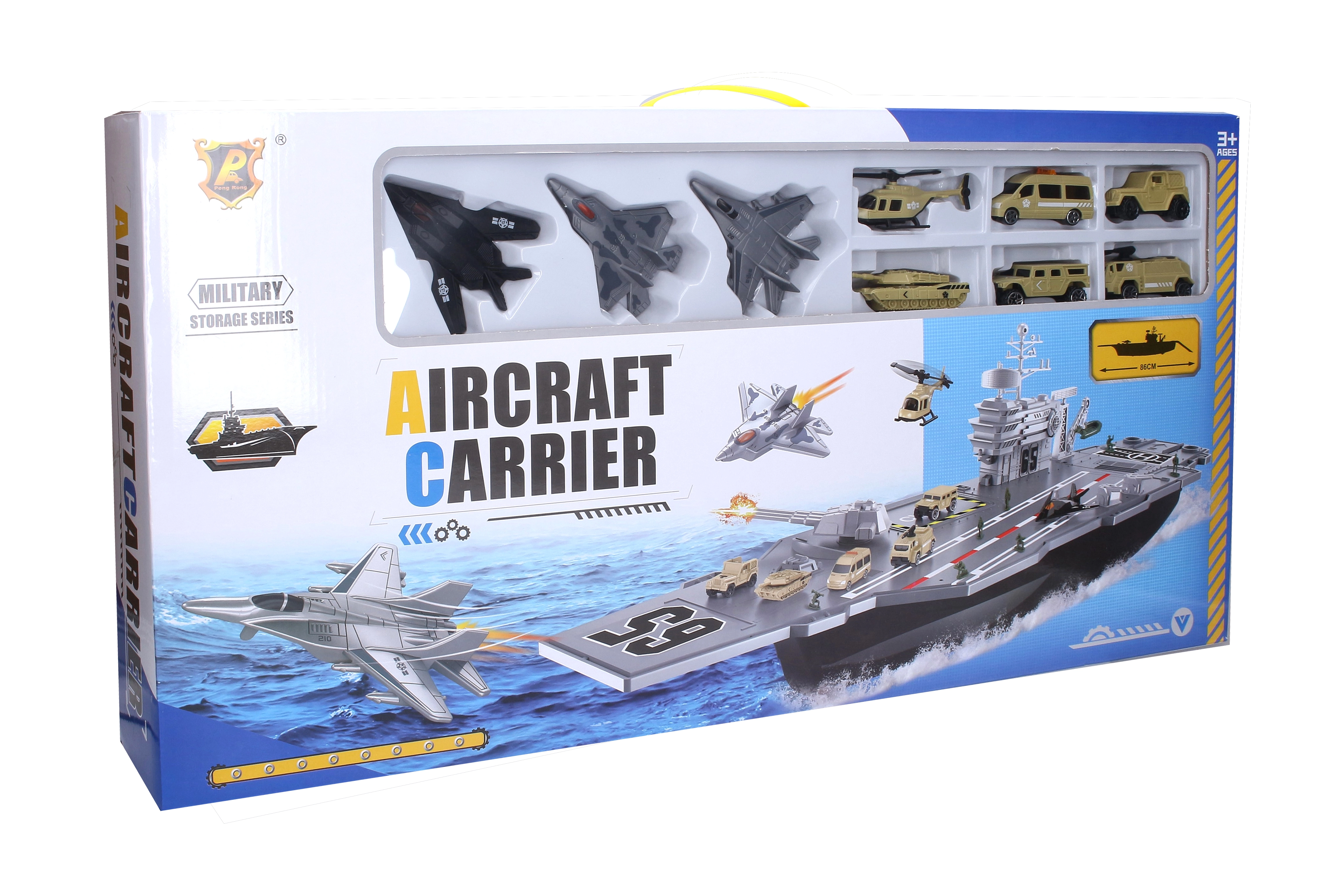 Dit gedetailleerde vliegdekschip biedt kinderen uren aan creatieve speelpret. Dankzij de royale afmetingen van 86 × 19 × 21 cm en de uitgebreide accessoires kunnen realistische scenario’s van landingen, starts en maritieme missies worden gecreëerd. De voertuigen hebben vrijloopwielen voor soepele beweging en het luchtmaterieel staat klaar voor actie.